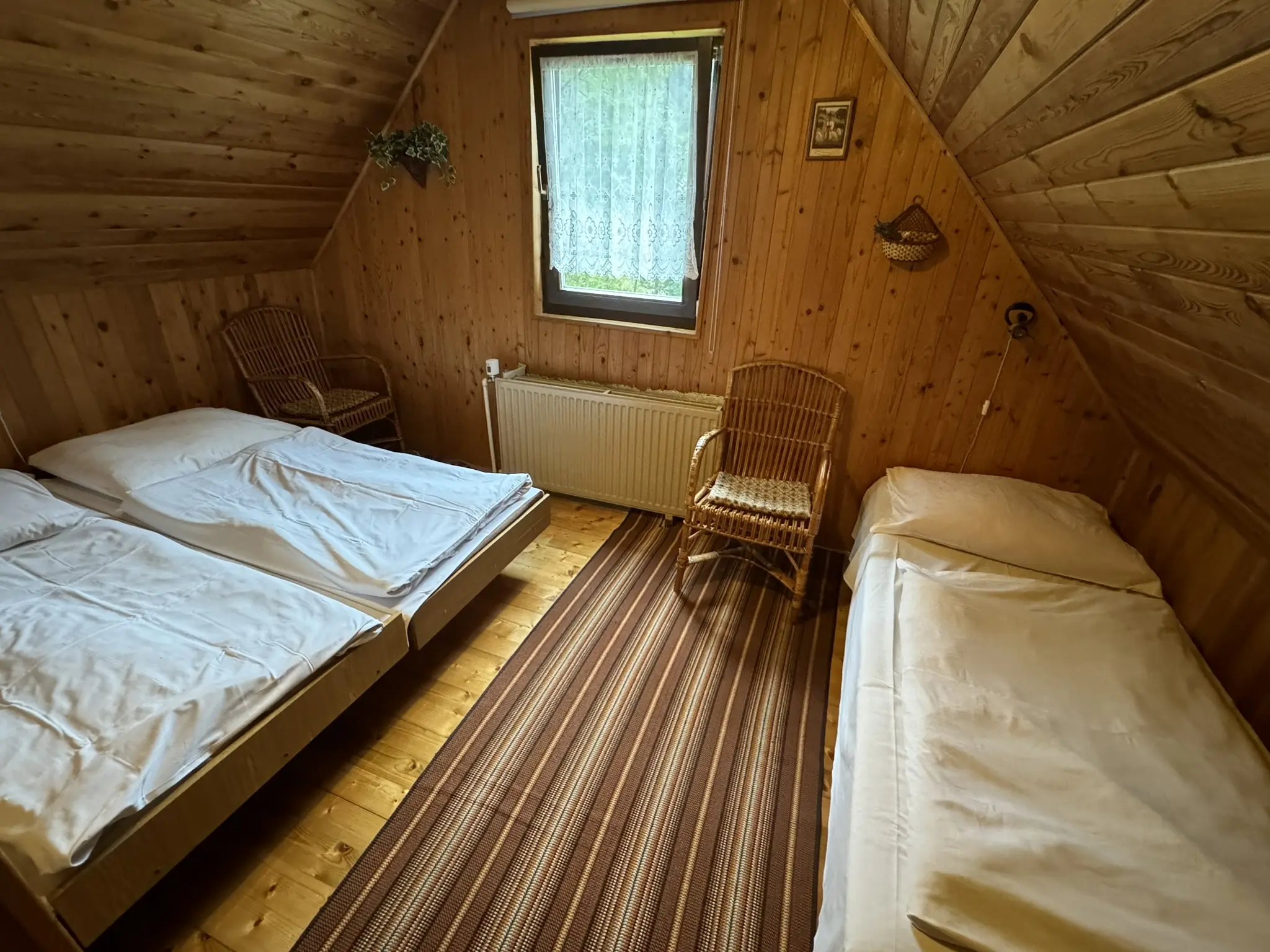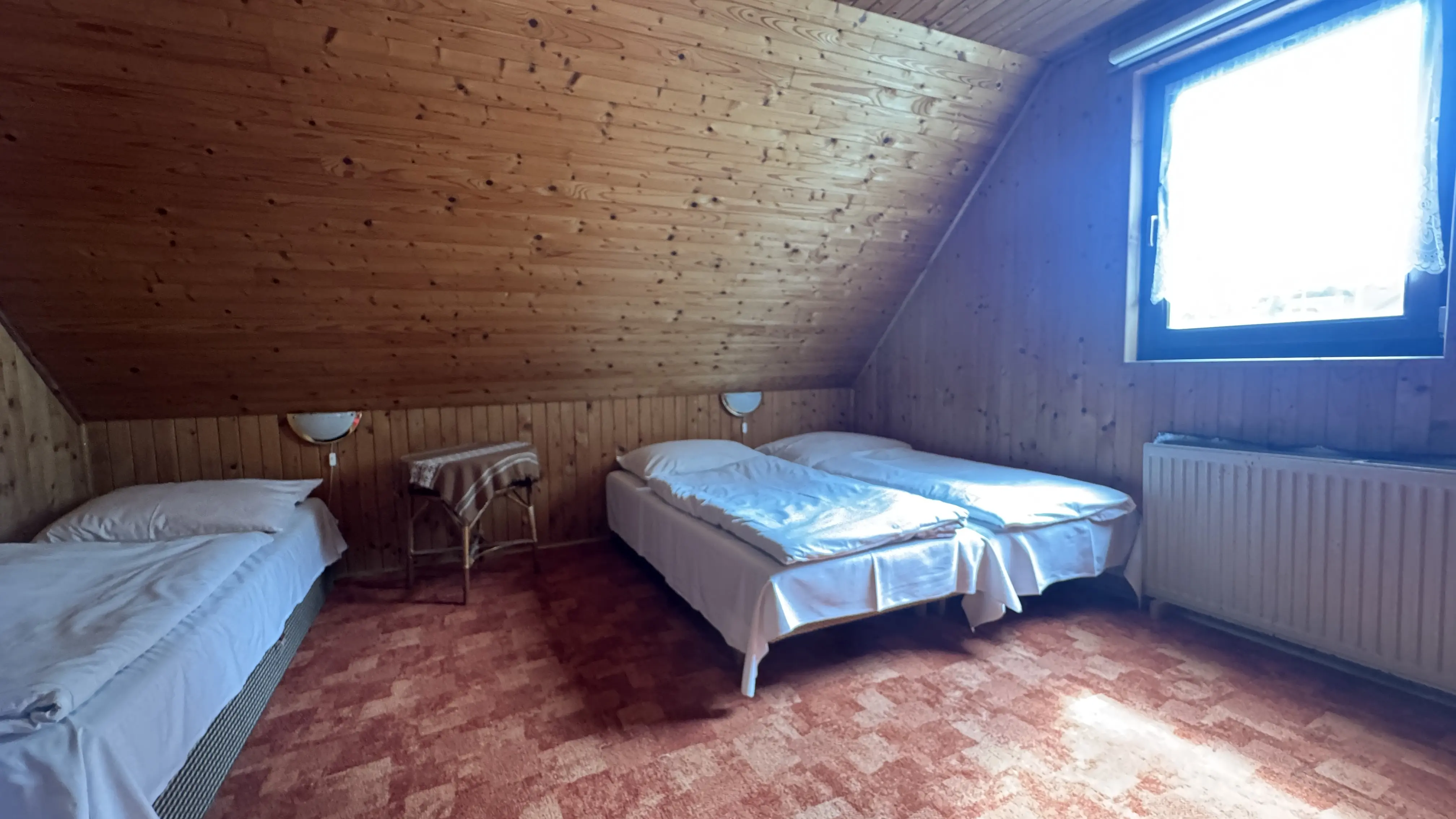 Na poschodí sa nachádza jedna 4-lôžková s TV a jedna 3-lôžková izba, každá so samostatným vstupom. Ďalšie schodište, ktoré vedie zo spoločenskej miestnosti je k 4-lôžkovej izbe na poschodí. Ústredné kúrenie v celom objekte.